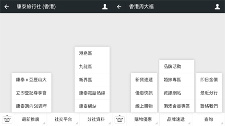The advantages of the customized menu lie not only in that you can display features in the most obvious place directly, but also allow followers to know how to interact effectively with brand's WeChat account.